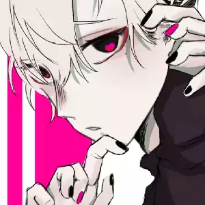 【容姿】身長180cm 白髪に黒からマゼンタカラーのグラデの瞳。角度によっては赤い瞳に見える。刈り上げ。緩くウェーブかかった髪質でとても細くサラサラ。基本的にハイネックの服を着用している。全体的に暗めの服が多い。ネイルしていて中指のマゼンタカラー以外は黒色のネイルを施している。
