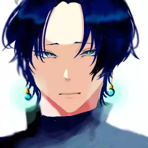 【容姿】淡い黄緑色の長めの髪で、いつも纏めてハーフアップにしている。ボサボサに見えるが、少し天パなだけ。ラピスラズリのような綺麗な紫色の瞳。自分の目を嫌っていた時期があり、その名残で伏目がち。目が少し悪く、筆記の授業のときは丸眼鏡を掛けている。身長は178cmで、体重は62kgの痩せ型(食事を摂ったり摂らなかったりするから)。肌をあまり晒す事がなく、白い肌をしている。寒がりでカーディガンの上にローブを着込んでいる。夏はカーディガンのみ。撫で肩で片方がずり落ちてばかりいる。ネクタイを着けるのをたまに忘れる。黒のイヤーカフが左耳に二つある。その他のアクセサリーを着けることはほぼ無いが、誰かから送られれば着ける。